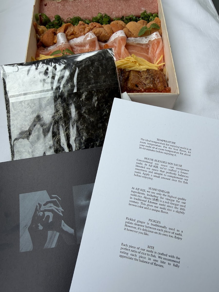 This menu fits well with the casual yet attentive atmosphere of Aji Kiji, where anticipation and a moment’s pause before eating add to the enjoyment. Customers often appreciate the thoughtfulness behind each box, with accompaniments like pickled vegetables and carefully measured condiments enhancing each bite. Whether you’re grabbing sushi on the go or bringing it back to a relaxed setting, the menu’s clean, fresh flavors invite easy, satisfying dining moments.
